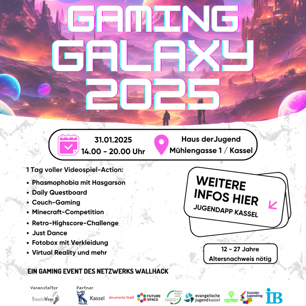 Am 31. Januar 2025 fand im Haus der Jugend, Mühlengasse 1, 34125 Kassel das Event Gaming Galaxy 2025 statt!